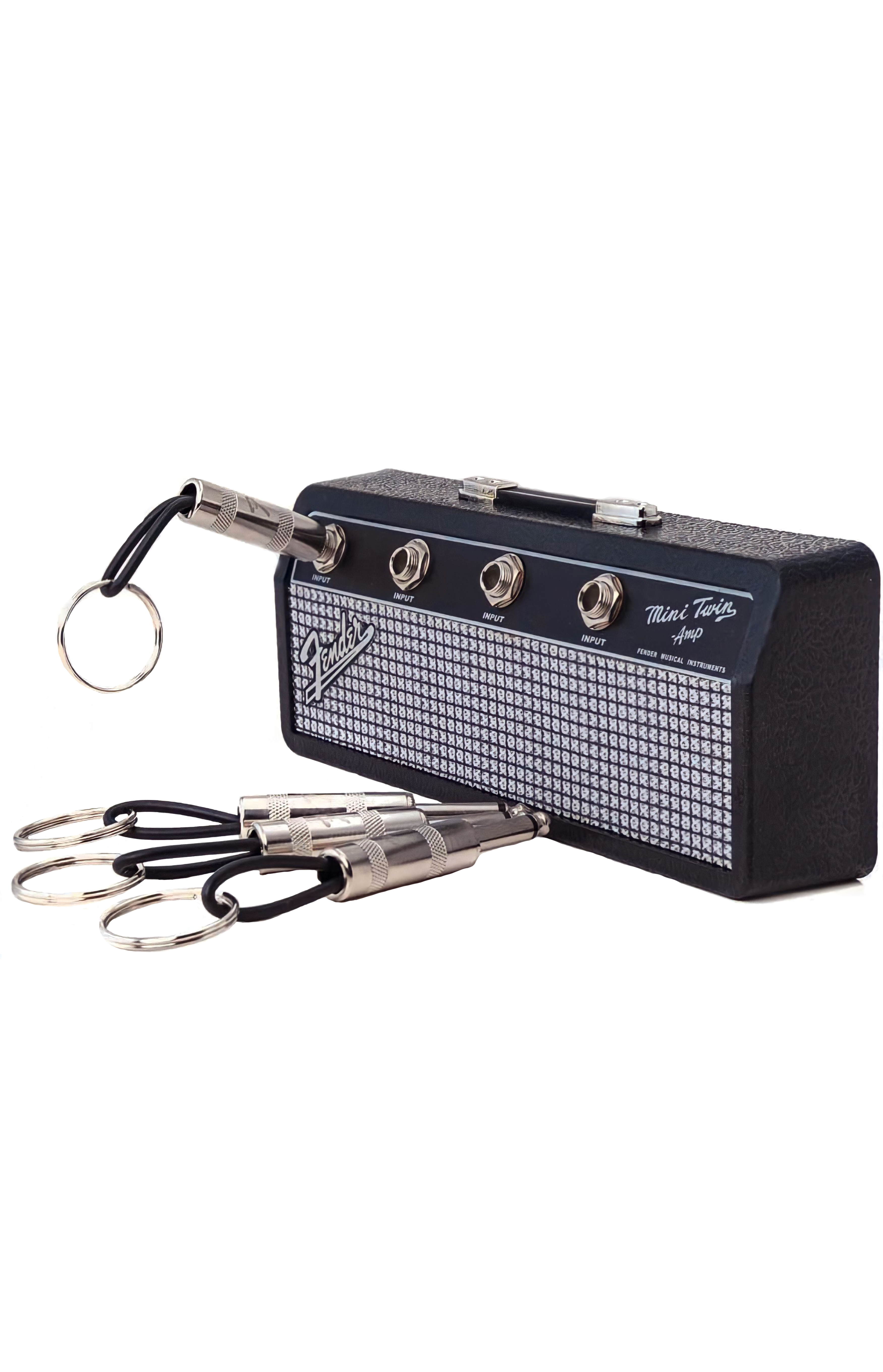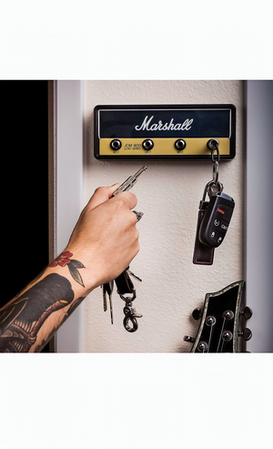 Introducing the ultimate keychain holder for any guitar enthusiast - our Guitar Amp Wall Mount Keychain Holder! Keep your keys organized in style with this unique and eye-catching keychain holder that resembles a classic guitar amp. With four guitar plug keychains included, you'll never lose your keys again and can show off your love for music wherever you go. Whether you're a professional musician or simply a fan of rock and roll, this keychain holder is the perfect accessory for your home, studio, or office. Get ready to rock and roll with our Guitar Amp Wall Mount Keychain Holder!
