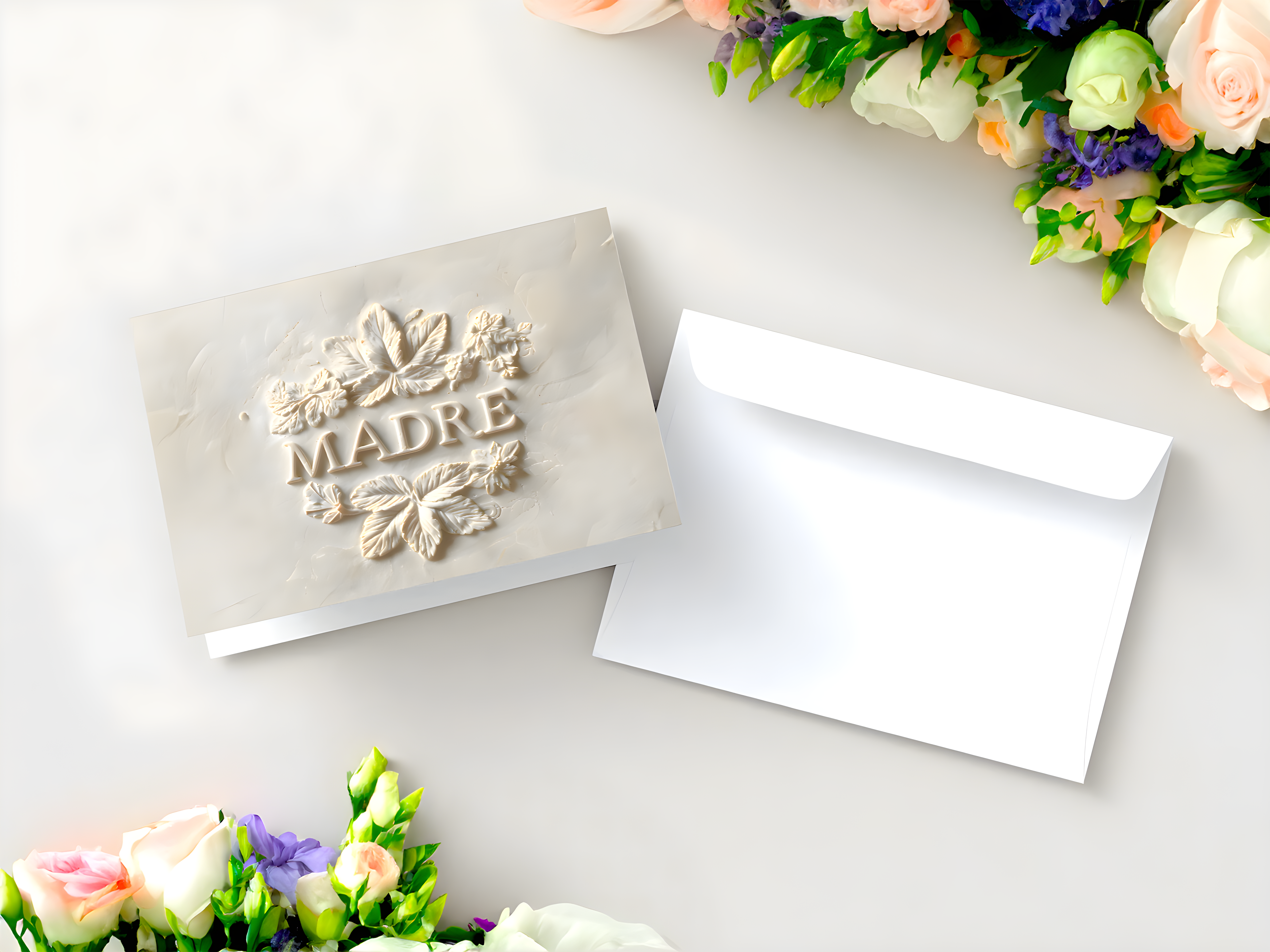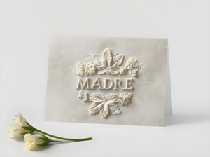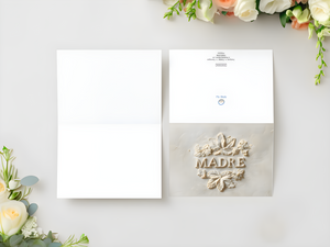 Hey there, Mama's favorite human! Show your appreciation with our Mother's Day card featuring "Madre" carved in marble. It's the perfect way to celebrate the queen of your heart. Complete with a white envelope, this card is ready to make her day extra special. Because let's face it, she's not just any mom, she's your Madre!