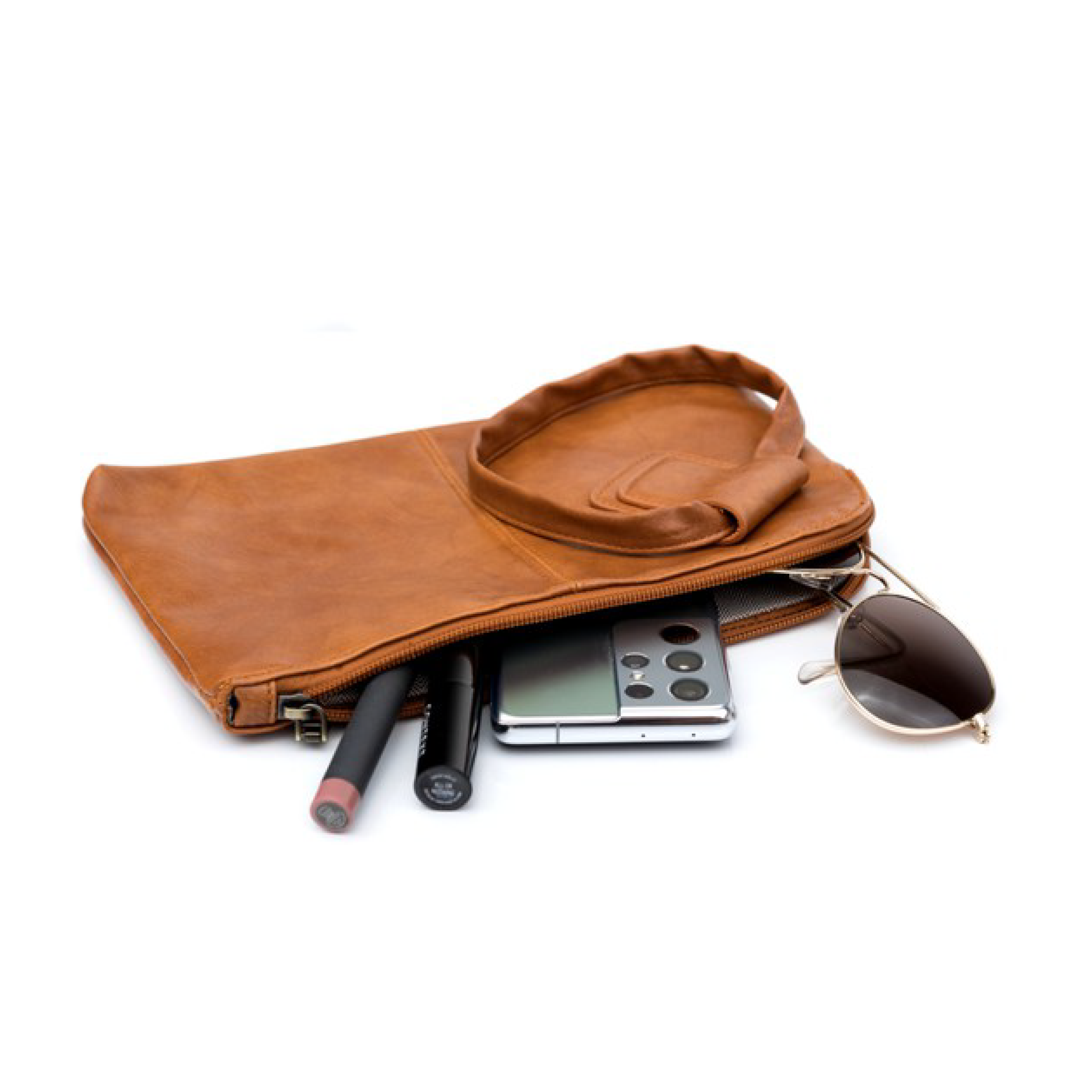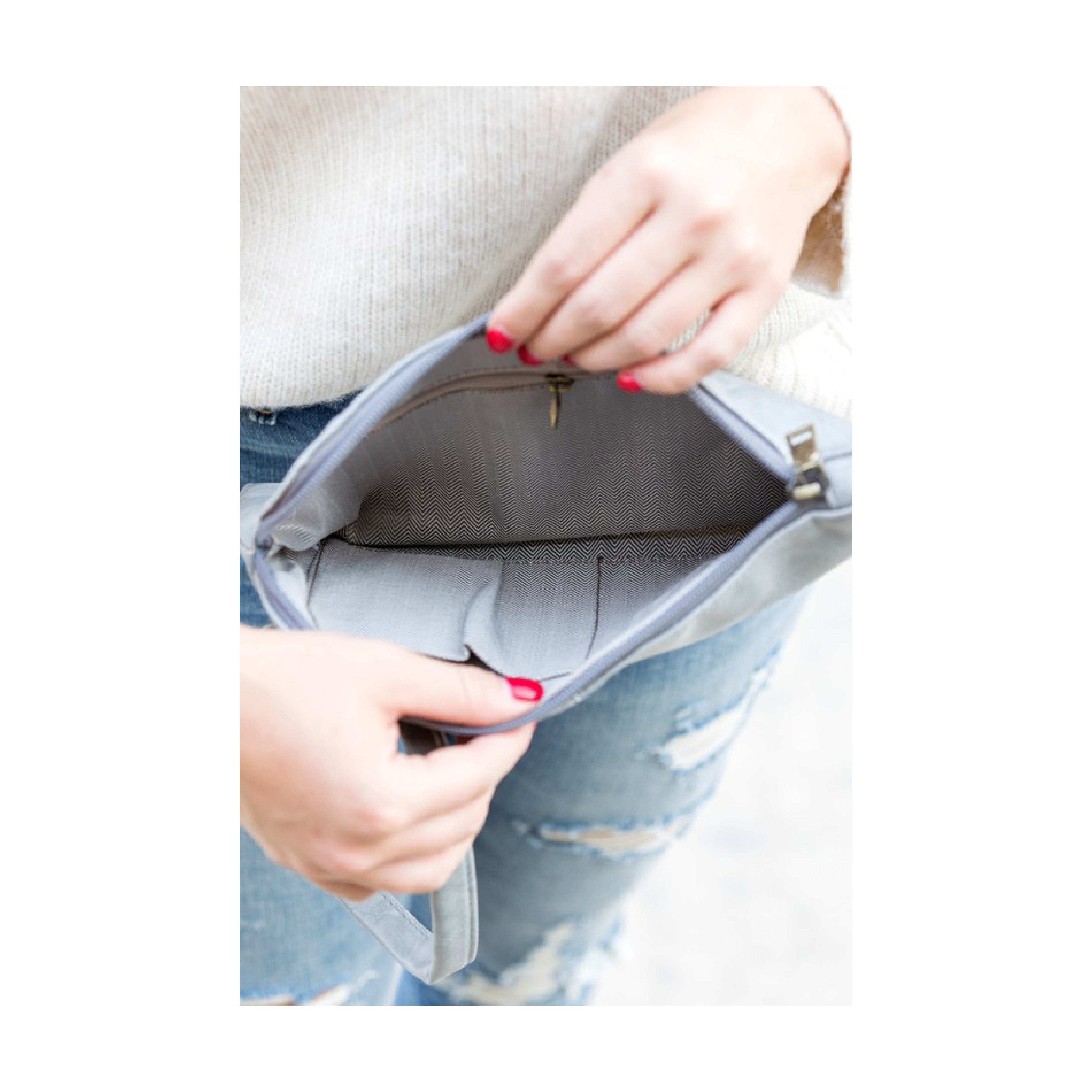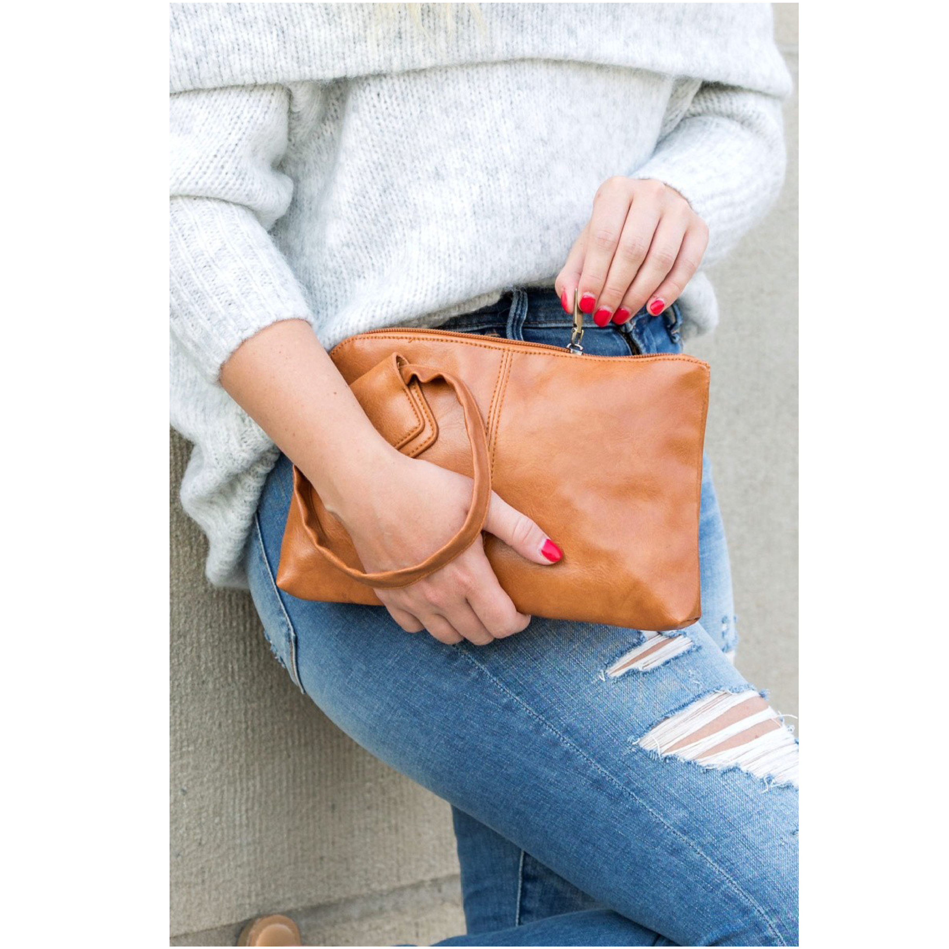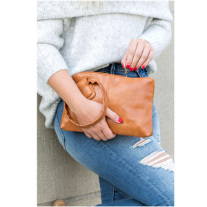 Toss in some personality with our O ring wristlet design. A compact size that's perfect for all your outings - errands, brunch, girls night, date night, and more! Made with soft, vegan PU leather exterior and 100% polyester lining. Attached wristlet for hassle-free carrying. Includes inside pockets: one zipper pocket and two open pockets. Measurements: 10.5"" L x 6.75" W.