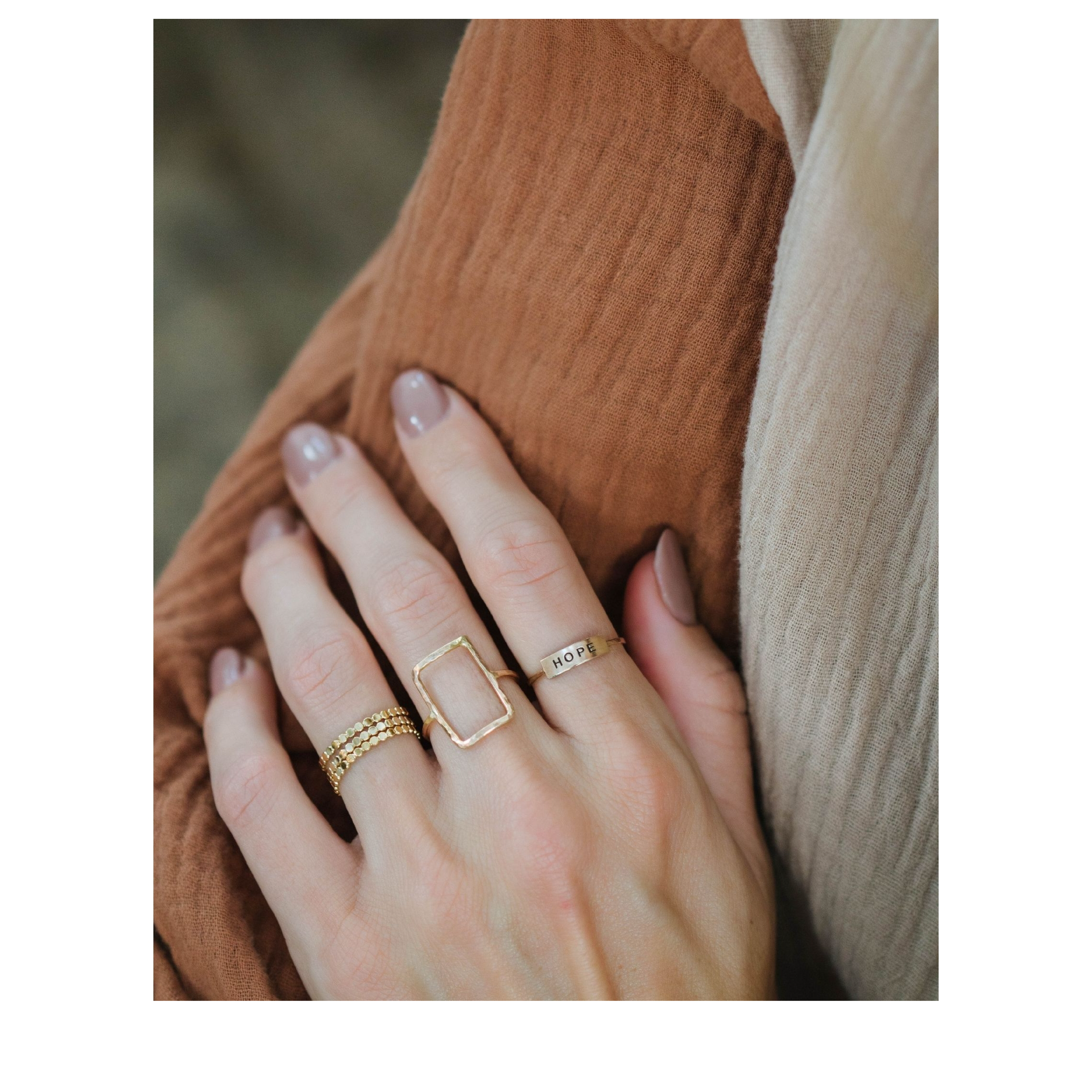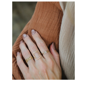 Oksana ring is hand forged from coils of wire and hammered for a beautiful textured finish. A true statement ring in 14kt gold filled.