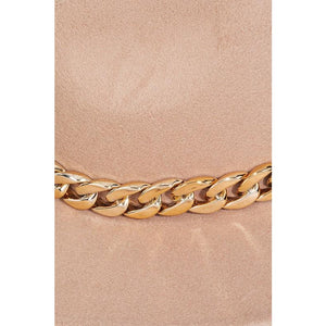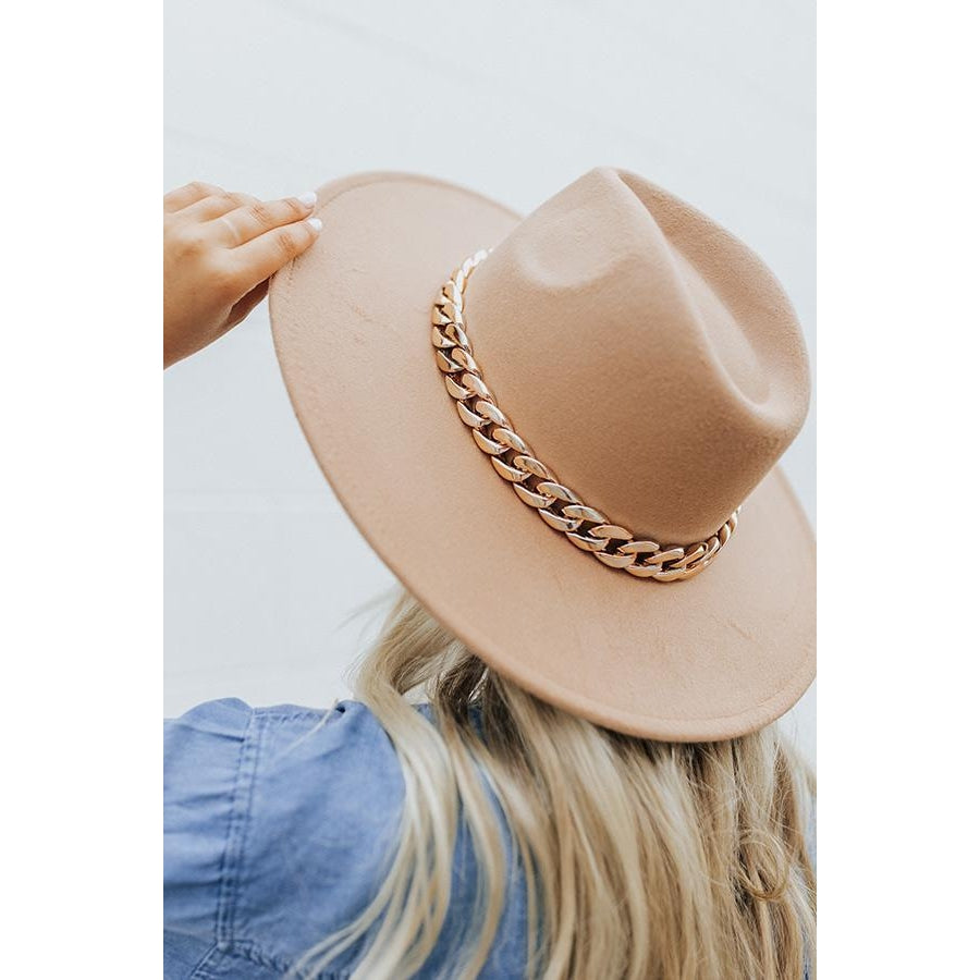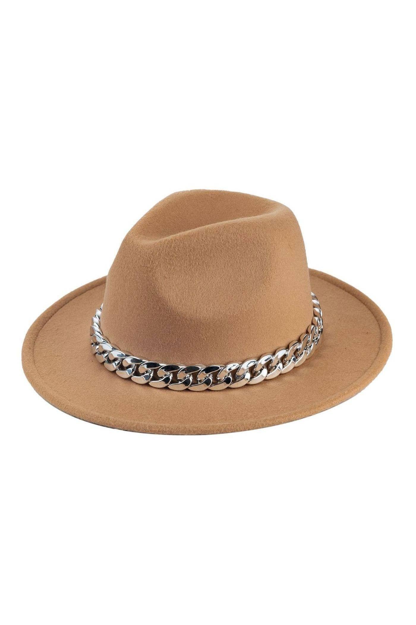 Unique, Timeless, and Classic Gatsby Style wool-blend Fedora hat keeps you comfortable and stylish. Narrow Brim Classic Fedora Hat with Gold Tone Chain Hatband