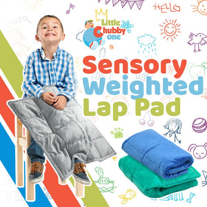 The Little Chubby One Sensory Weighted Lap Pad weighs 7 pounds to provide a soothing, deep pressure to help your child feel calm and grounded in stressful situations.