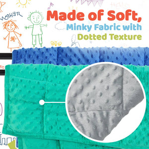 Dotted Fabric: In addition to the comforting weight of the blanket, the material features small raised dots to provide sensory input and encourage tactile exploration for fidgety hands.