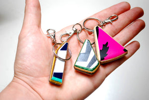 Handcrafted to order, each of these repurposed wood key chains is cut, carved, sanded and polished one at a time. This unique keychain is eye-catching, durable, and colorful. Each key chain has side lengths of around 1" to 2" depending on the shape you order. The depth is about 3/8 of an inch and fits in the palm of your hand. Perfect for men, women, teens, or just about anyone.